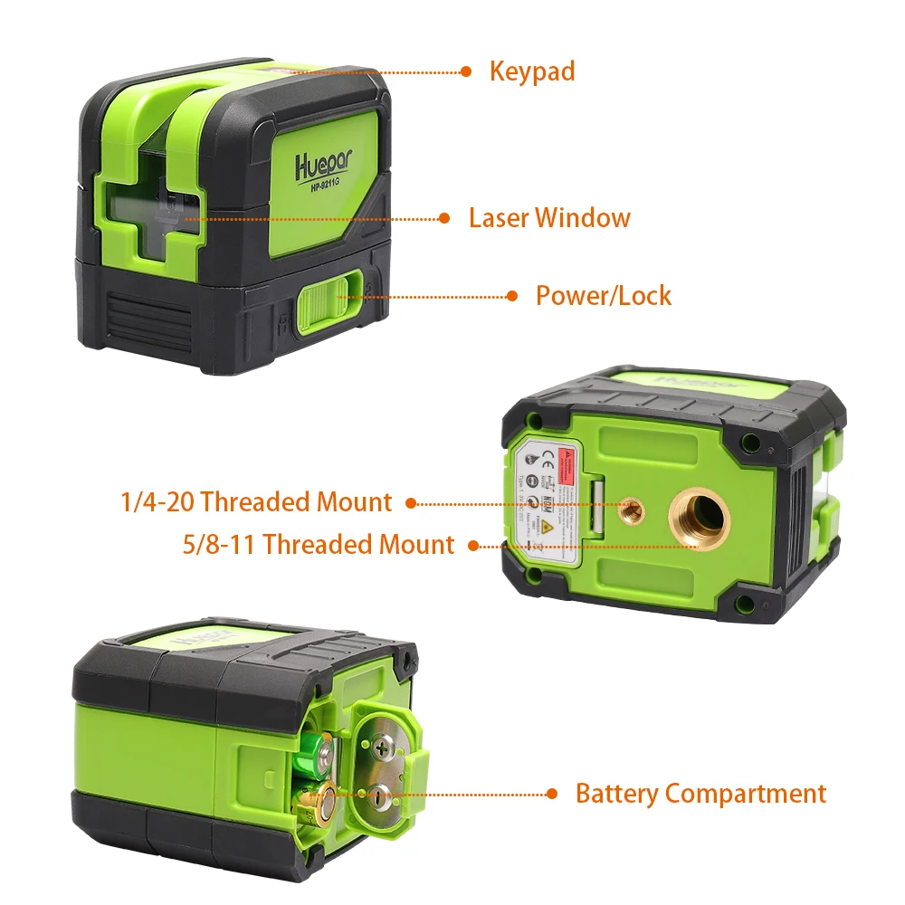 Best Quality Huepar Green Beam Laser Level 2 Cross Lines 2 Points Professional 180 Degrees Self-leveling Nivel L
