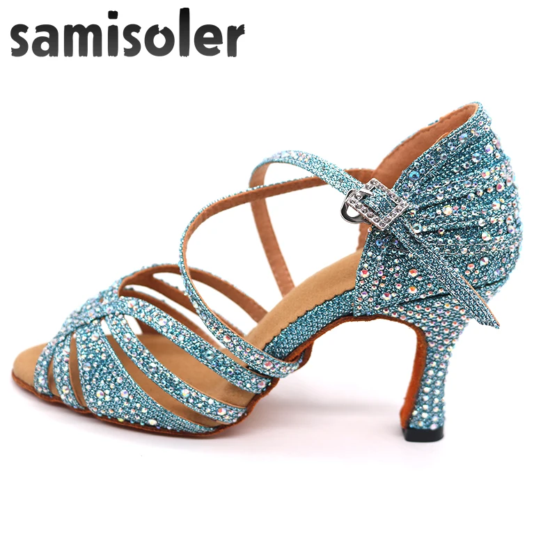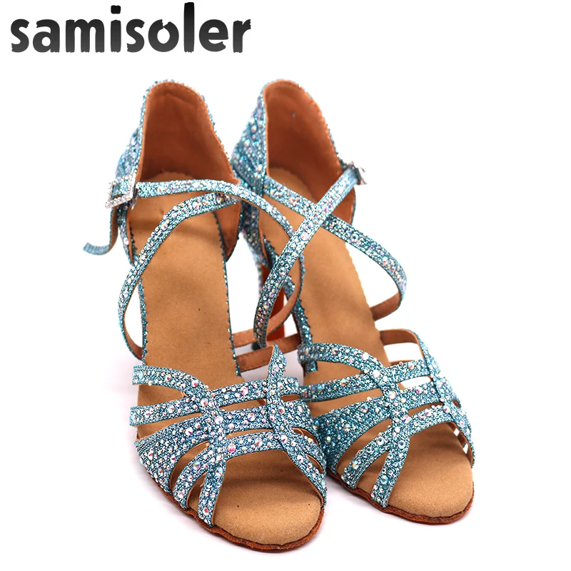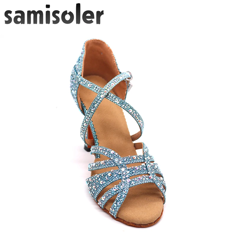 Samisoler blue Rhinestone ballroom dance shoes women Salsa dance shoes women Professional tango Lat