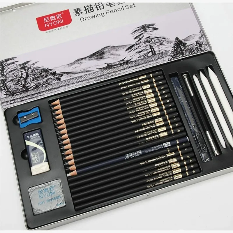 Review Charcoal Pencil Sketch Set Professional Sketching Pencils Wood Painting Pencil Earser Knife Station